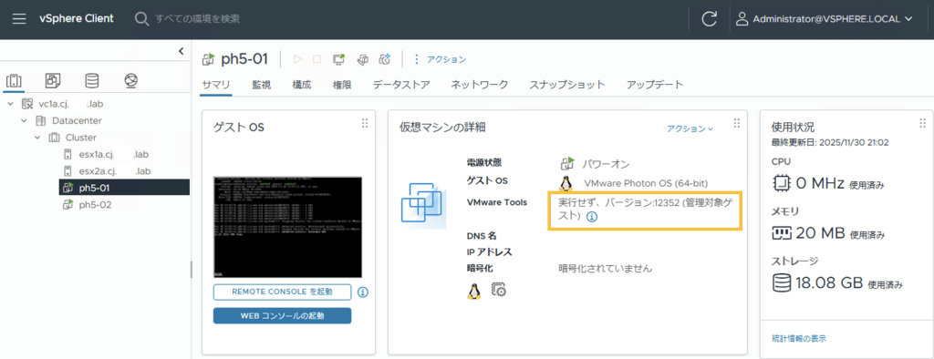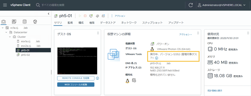 下記コマンドレッドでは、VMware Tools のバージョンやタイプも確認可能です。